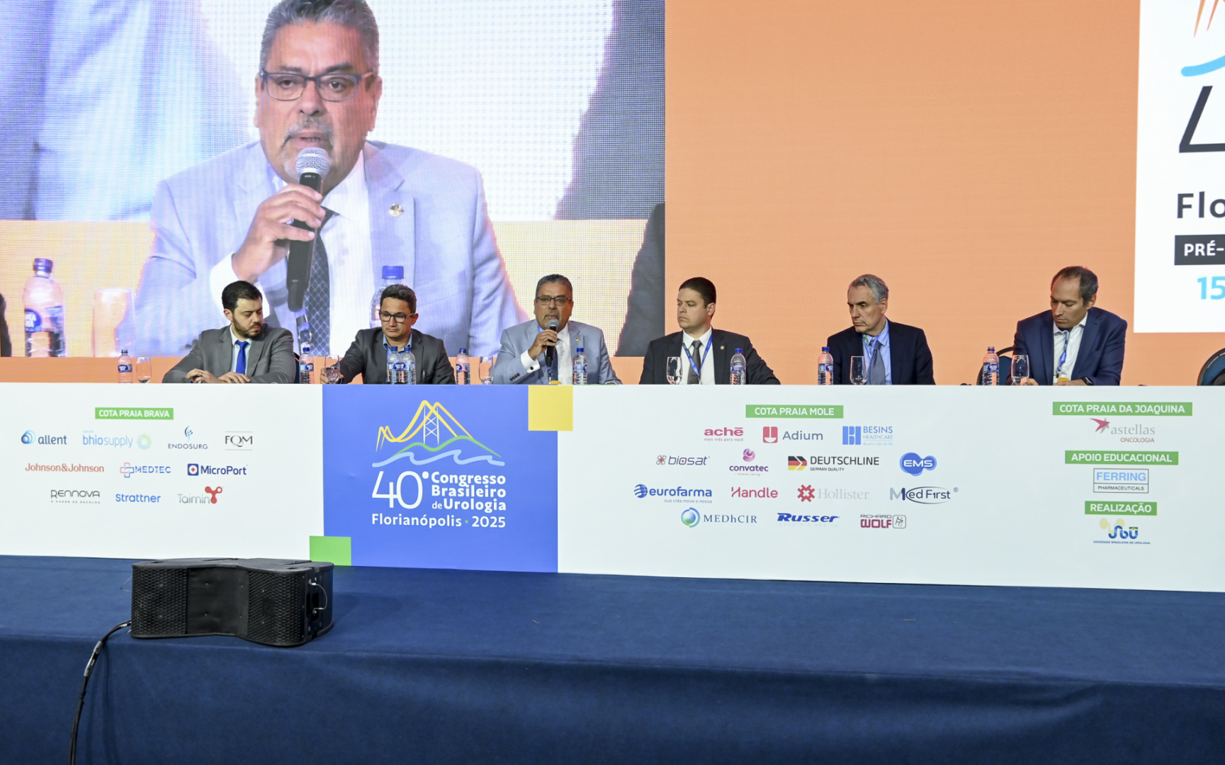 A solenidade de abertura do CBU 2025 foi realizada no sábado, 15 de novembro. A mesa contou com a participação do presidente da SBU, Dr. Luiz Otavio Torres; do presidente da Comissão da Científica do CBU 2025, Dr. Roni de Carvalho Fernandes; de ex-presidentes da entidade; do senador Hiran Gonçalves, presidente da Frente Parlamentar da Medicina; do secretário-geral da SBU, Dr. Pedro Gabrich; do presidente da SBU-RJ e representante dos delegados, Dr. Mauro Muniz; do conselheiro do CFM Dr. Marcelo Reis; e da presidente do CRM-SC, Dra. Andréa Caldeira.
