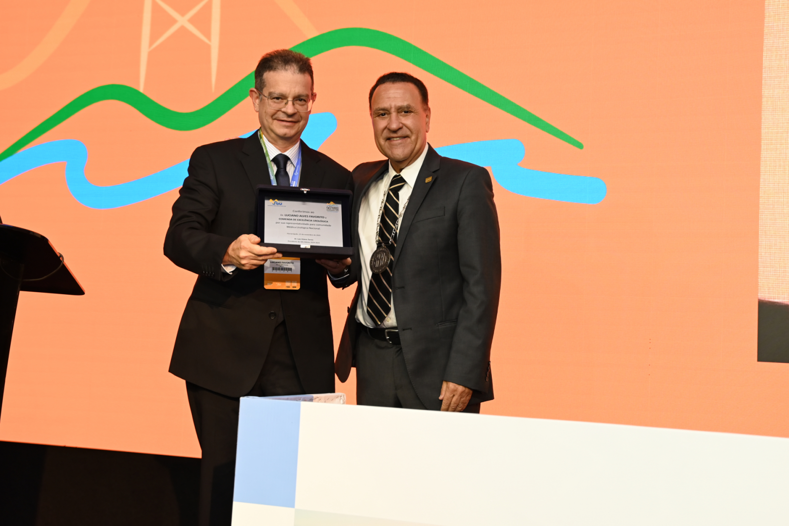 Em seguida, houve a entrega de medalhas que marca a troca das gestões: Dr. Luiz Otávio Torres recebeu a medalha de ex-presidente e Dr. Roni de Carvalho Fernandes, a de atual dirigente da entidade. “Não medirei esforços para manter o alto nível da nossa Sociedade. Vamos juntos seguir fazendo história. A SBU não para e estará sempre ao seu lado”, frisou Dr. Roni.