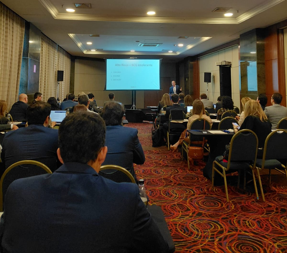 Tive a honra de participar da abertura ao lado do Dr. Fernando Maluf, idealizador do congresso, Dr. Alexandre Pompeo, representando a comissão organizadora, e Dr. Cristiano Gomes, presidente da nossa seccional São Paulo. Em seguida, ao lado do Prof. Dr. Antônio Carlos Lima Pompeo, meu professor e ídolo dentro e fora da SBU, participamos juntos de um debate com o Dr. Laurence Klotz, referência mundial em vigilância ativa no câncer de próstata de baixo risco. Klotz mostrou, em sua aula sobre radiogenômica e a história natural do câncer de próstata visível versus invisível, como a combinação de imagem (RM) e biologia tumoral pode nos levar a protocolos em que a ‘visibilidade’ do tumor na imagem pesa tanto quanto – ou mais que – o Gleason na decisão entre vigilância ativa e tratamento radical, com potencial de mudar até a forma como realizamos a biópsia sistemática.