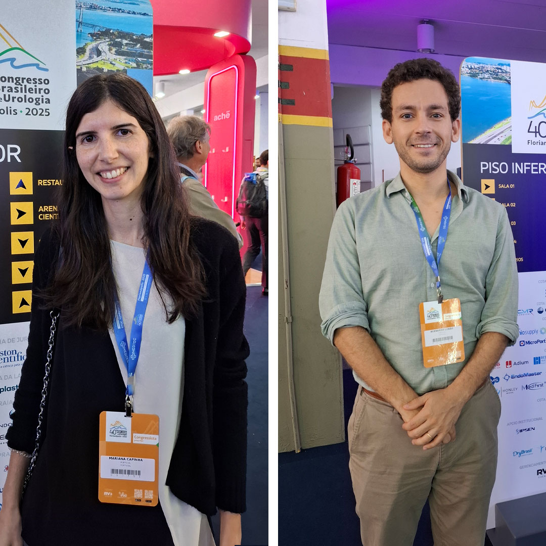 Por meio da parceria da SBU com a Associação Portuguesa de Urologia (APU), um urologista e uma residente portugueses estão no Brasil realizando estágio de um mês em centros de excelência e tiveram a oportunidade de participar do CBU 2025, que ocorreu de 15 a 18 de novembro em Florianópolis. Dr. Bernardo Lobão está acompanhando as atividades no Hospital Pompeia e no Instituto da Próstata Aumentada, em Caxias do Sul (RS), e Dra. Marina Capinha, no Instituto do Câncer do Estado de São Paulo (Icesp).